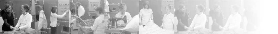 Dampfwäsche / Reinigung Per Luftdruck füllen wir Ihre Daunen in die Reinigungsmaschine. Die Maschine entstaubt, dämpft, trocknet und sortiert Ihre Bettfüllung. Dieser Vorgang dauert etwa 30 Minuten. In der Zwischenzeit näht die Mitarbeiterin die Öffnungen an einer Seite zu (bei einem 6-Kammer- Steppbett somit 6 Nähte).Die Füllung wird vorübergehend in ein Leihinlett umgefüllt. Ihr Inlett wird in einem speziellen Waschvorgang separat gewaschen, getrocknet und mit der Heissmangel geglättet. | |
